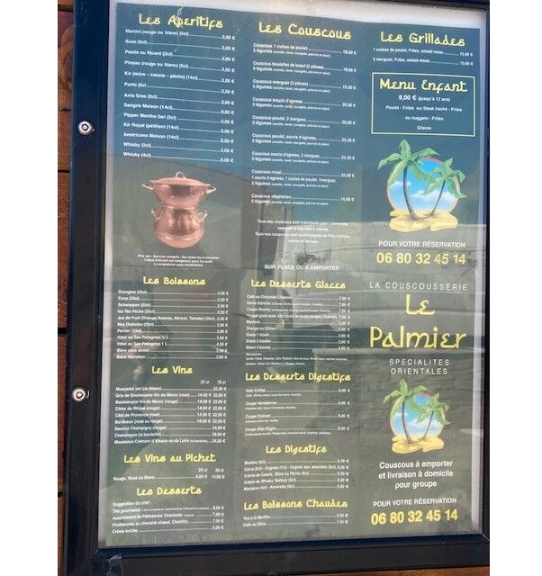 Vous choisirez parmi 9 couscous et également des grillades, un menu enfant et différents desserts